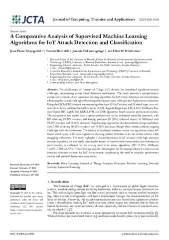 Ntayagabiri, Jean Pierre and Bentaleb, Youssef and Ndikumagenge, Jeremie and El Makhtoum, Hind (2025) A Comparative Analysis of Supervised Machine Learning Algorithms for IoT Attack Detection and Classification. Journal of Computing Theories and Applications, 2 (3). pp. 395-409. ISSN 3024-9104