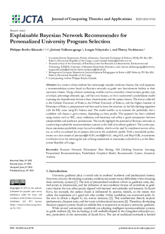 Kikunda, Boribo Philippe and Ndikumagenge, Jérémie and Ndayisaba, Longin and Nsabimana, Thierry (2025) Explainable Bayesian Network Recommender for Personalized University Program Selection. Journal of Computing Theories and Applications, 3 (1). pp. 17-33. ISSN 3024-9104