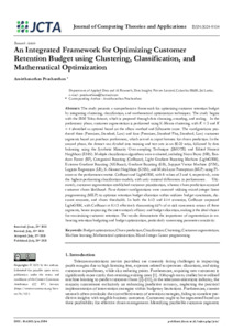 Prashanthan, Amirthanathan An Integrated Framework for Optimizing Customer Retention Budget using Clustering, Classification, and Mathematical Optimization. Journal of Computing Theories and Applications, 3 (1): 13194. pp. 45-63. ISSN 3024-9104